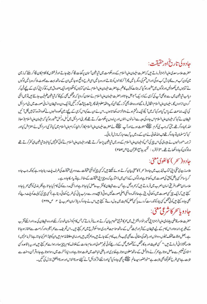 Allama Zubeidi Hanfi quoted in book while defining the meaning of ‘Jadu’ that fake visualization of something is called magic because the magician really does the same. The things stays there with its originality however, the magician makes it visualize in a different shape deceives the people.